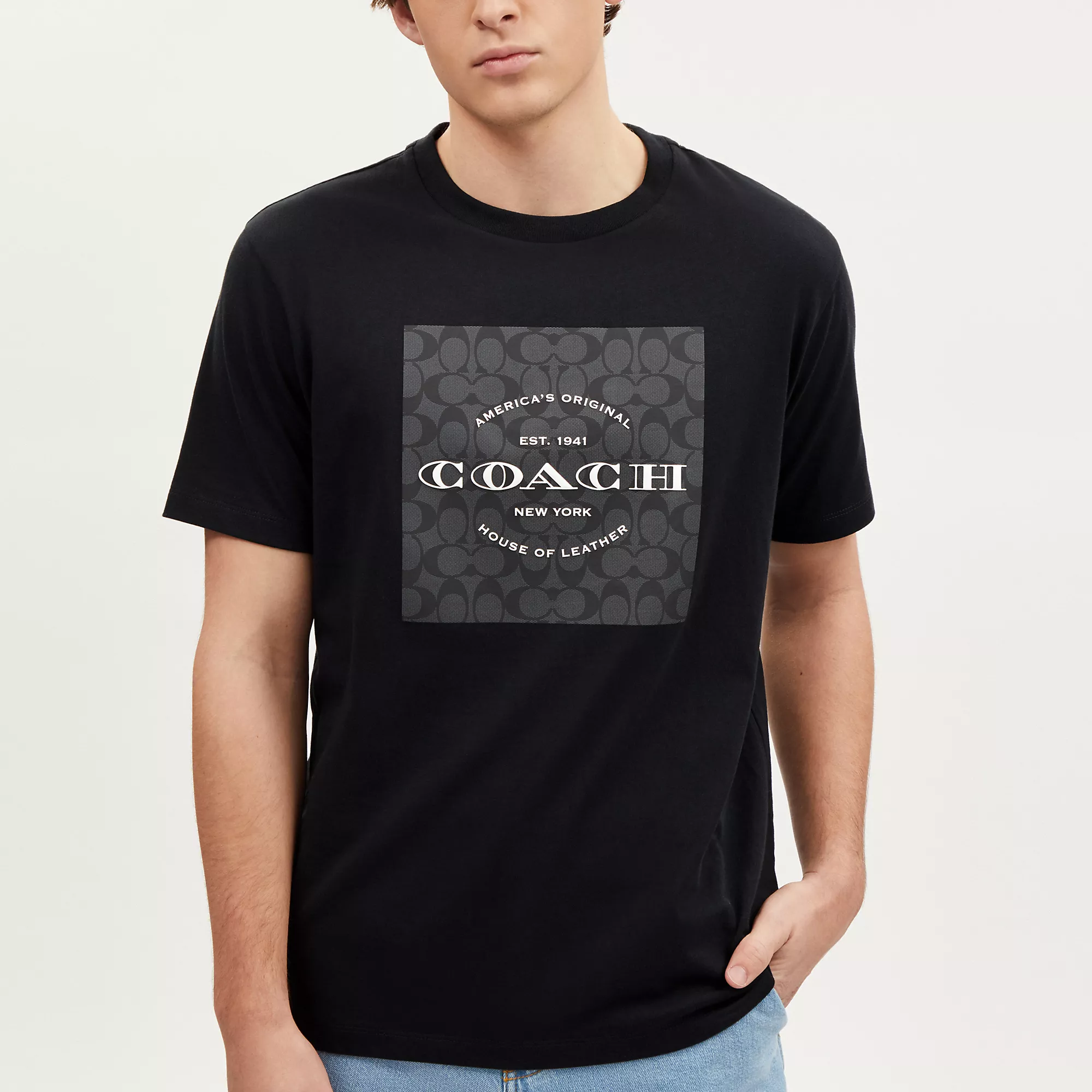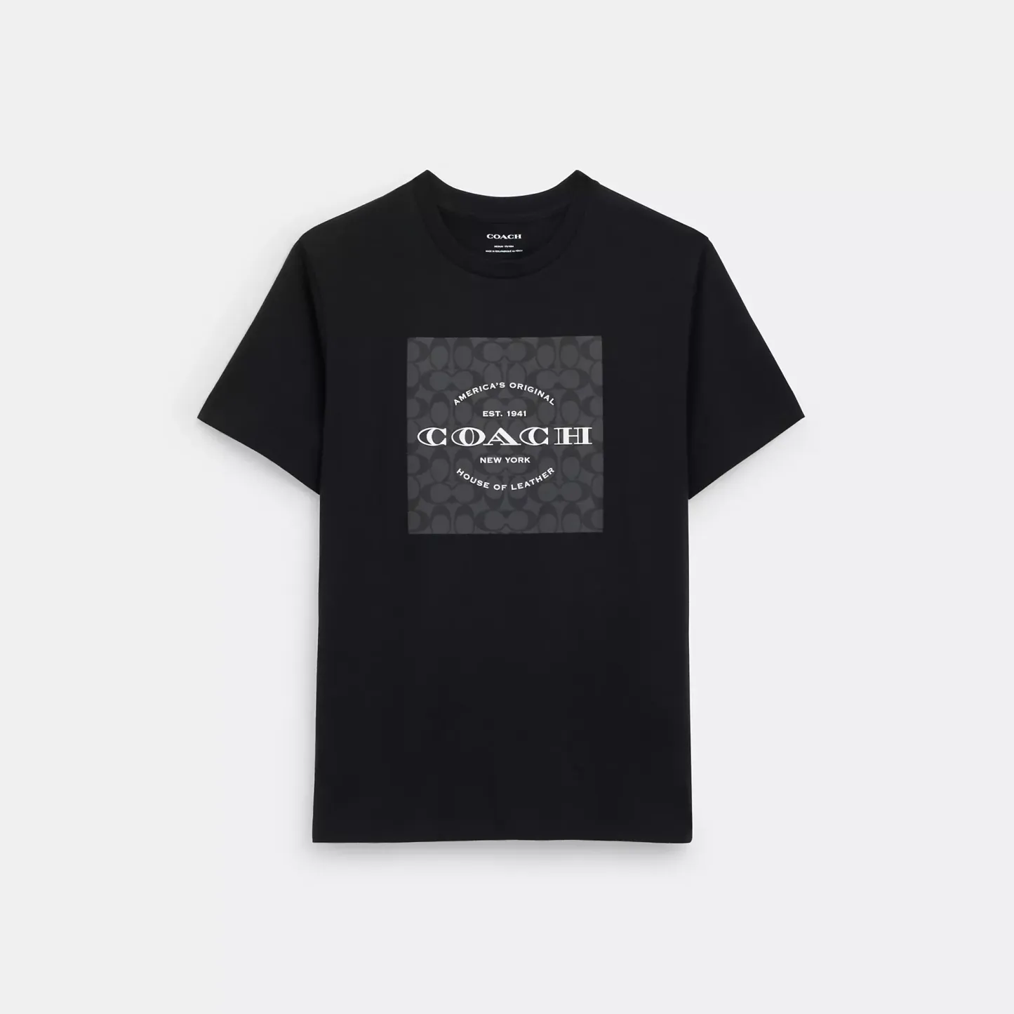 100% organic cotton Length - 28 1/2 Model is 6'2 (188cm) and wears a size M Style No. CO790 | Outlet Signature Square T-Shirt In Organic Cotton - Black, Size - Large