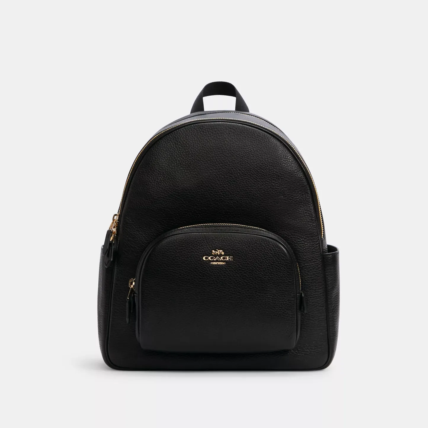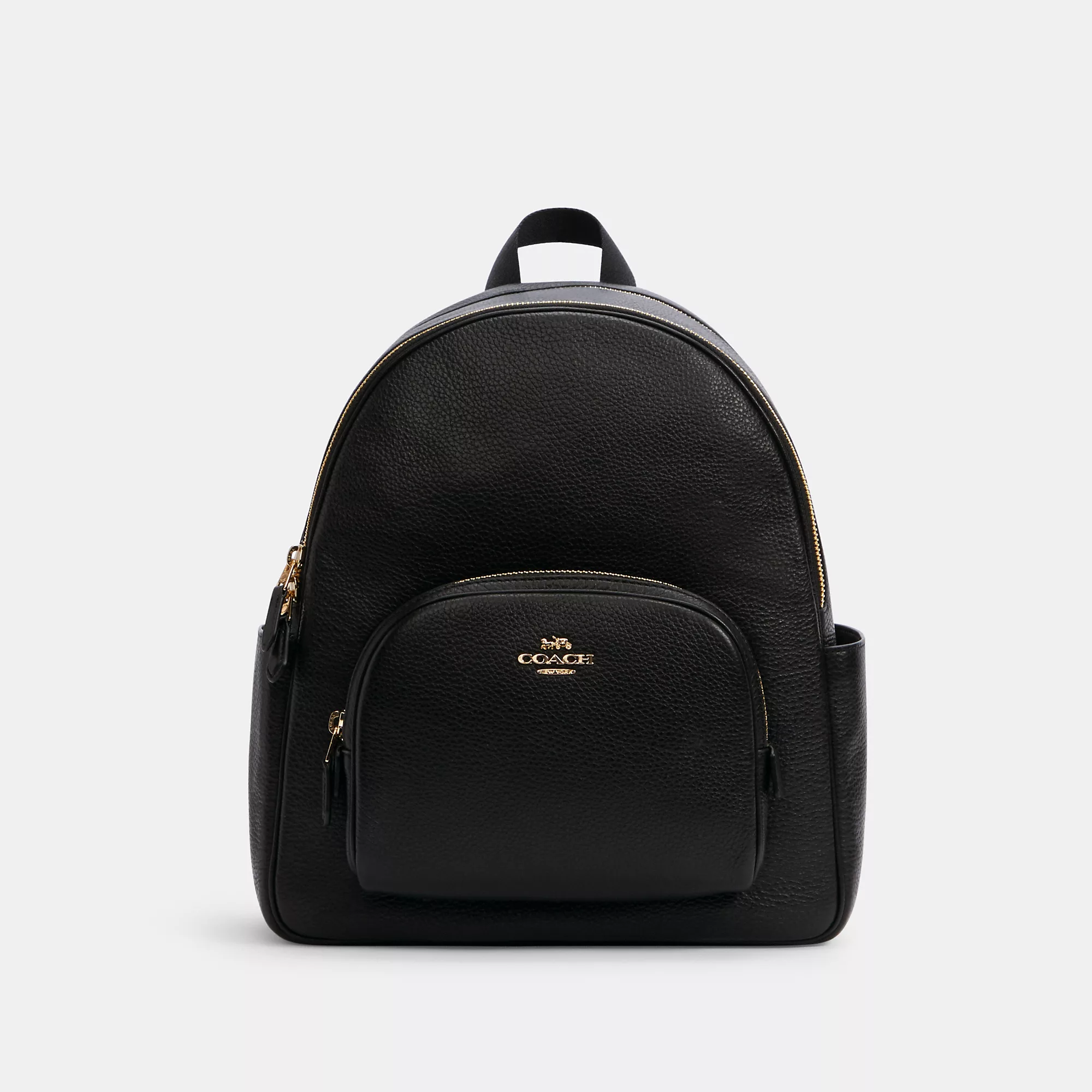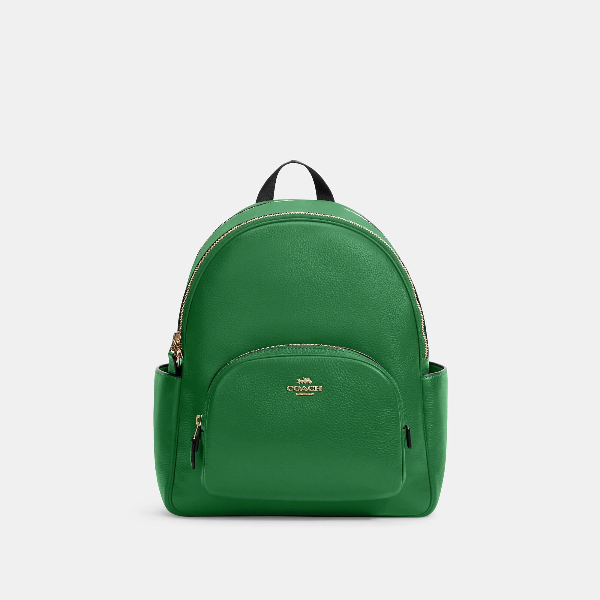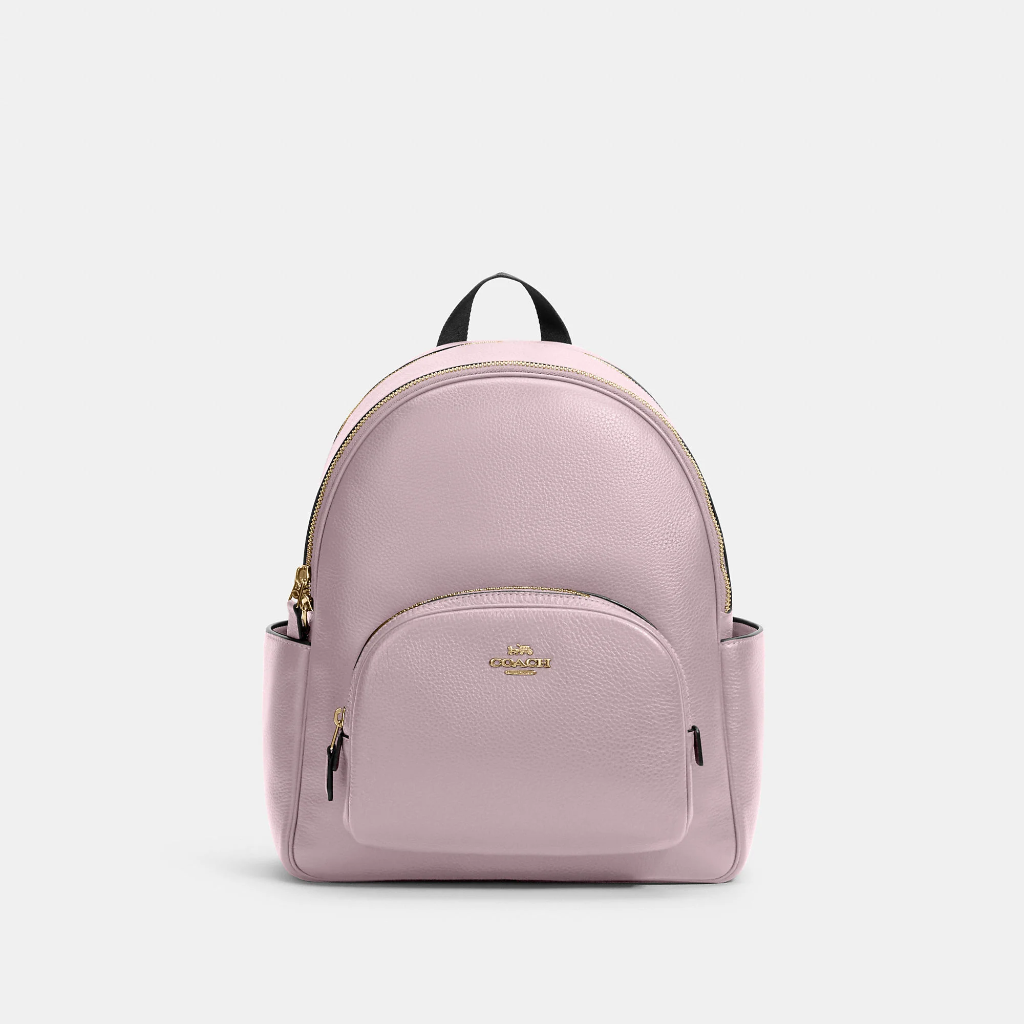 Refined pebble leather Inside zip and multifunction pockets Double zip closure fabric lining Handle with 2 1/4 drop Outside zip pocket Adjustable shoulder straps 10 3/4 (L) x 12 1/2 (H) x 4 3/4 (W) Style No. 5666 | Outlet Court Backpack - Grey
