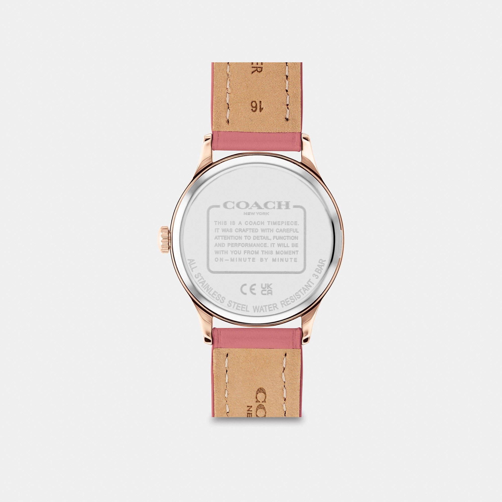 Carnation gold tone case and leather strap Approx. case diameter - 32mm Mineral crystal Quartz movement Buckle closure Water-resistant to 99 feet Style No. C9571 | Outlet Ruby Watch, 32 Mm - Pink