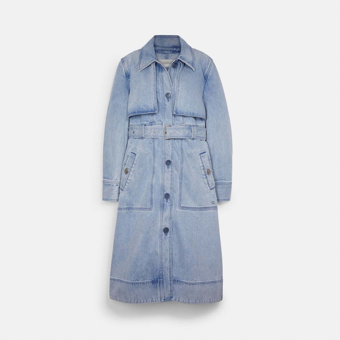 100% cotton Button closure Button pockets Adjustable belt Length - 43 Style No. C8792 | Outlet Trench - Blue, Size - Large