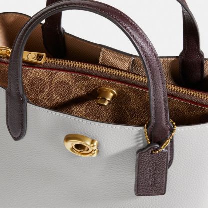 Polished pebble leather and Signature coated canvas